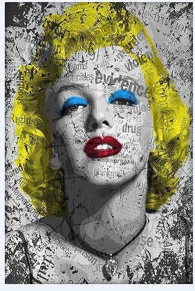 Elevate any interior with this bold 36x24" Uniquelet art print blending classic Hollywood allure and gritty urban edge. A striking monochrome portrait of a legendary blonde muse is punctuated by acid-yellow tresses, electric-blue eyeshadow, and vivid crimson lips, bursting through collaged bursts of torn headlines and paint splatters. Printed on museum-quality matte stock using archival inks at gallery-grade resolution, every layered texture and glossy highlight springs to life with razor-sharp detail. Perfect above a vanity mirror, in a creative studio, or on a loft lounge wall, it injects dynamic energy and sophisticated rebellion into your décor. Make a statement with Uniquelet’s daring fusion of cinematic glamour and street-art attitude that demands attention.